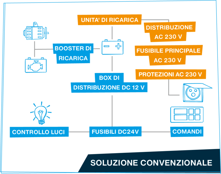 Il layout elettrico di un veicolo nel mercato del caravanning è estremamente complesso: lo spazio limitato richiede soluzioni compatte e intelligenti. Allo stesso tempo, il montaggio e il cablaggio non devono occupare eccessivi tempi di produzione e spazi di installazione.